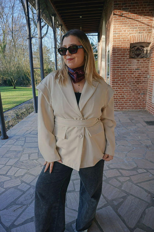 Blazer tailleur et ceinture crème