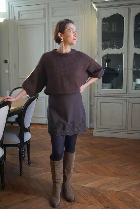 Jupe marron détail dentelle