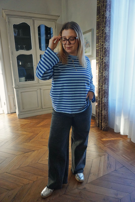 Top rayé bleu roi et bleu ciel