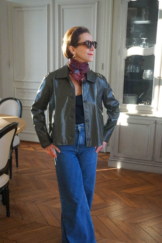 Veste similicuir effet huilé kaki