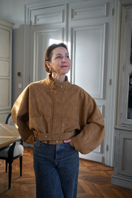 Veste suédine col montant camel
