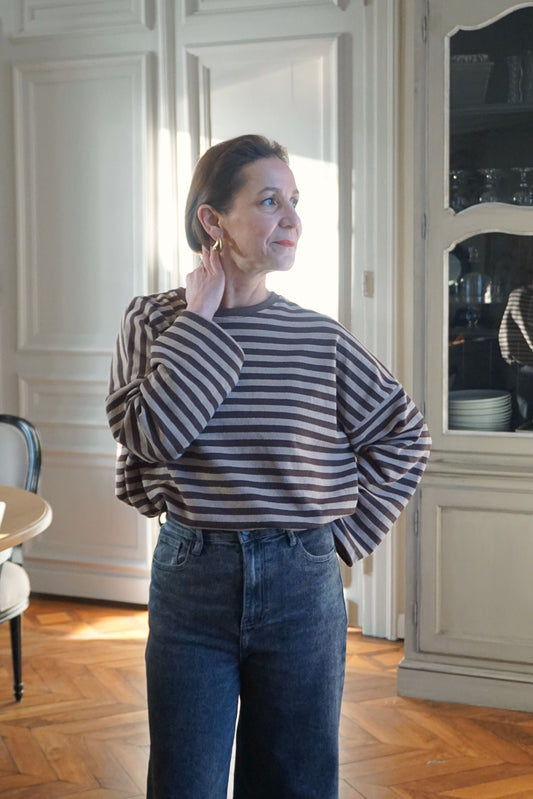 Top rayé marron et taupe