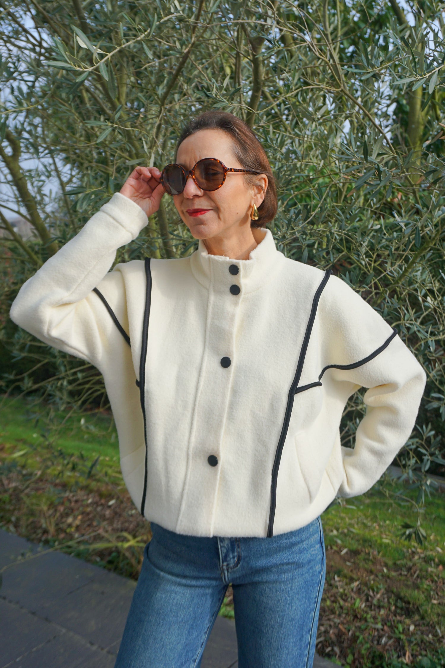 Veste col montant crème coutures noires