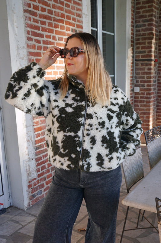Veste polaire motif vache kaki
