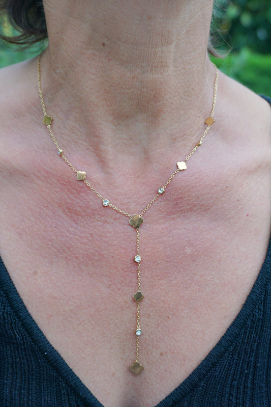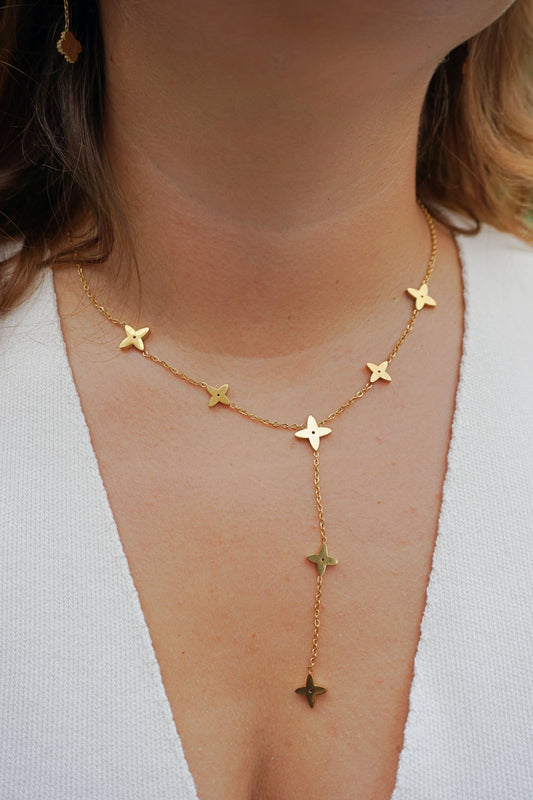 Boucles d’oreilles dorées pendantes fleurs et strass