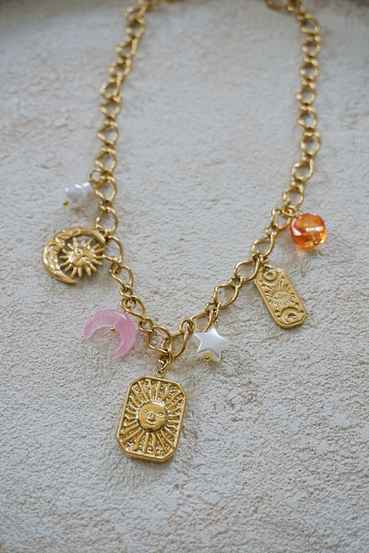 Collier doré charms soleil, lune, étoile PETIT DÉFAUT