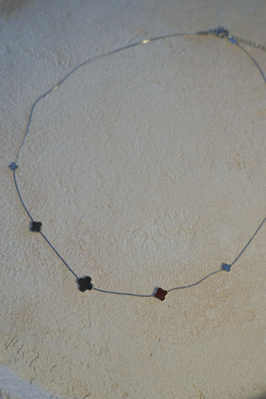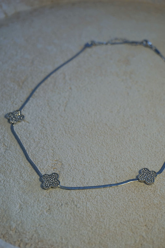 Collier argenté maille trèfle