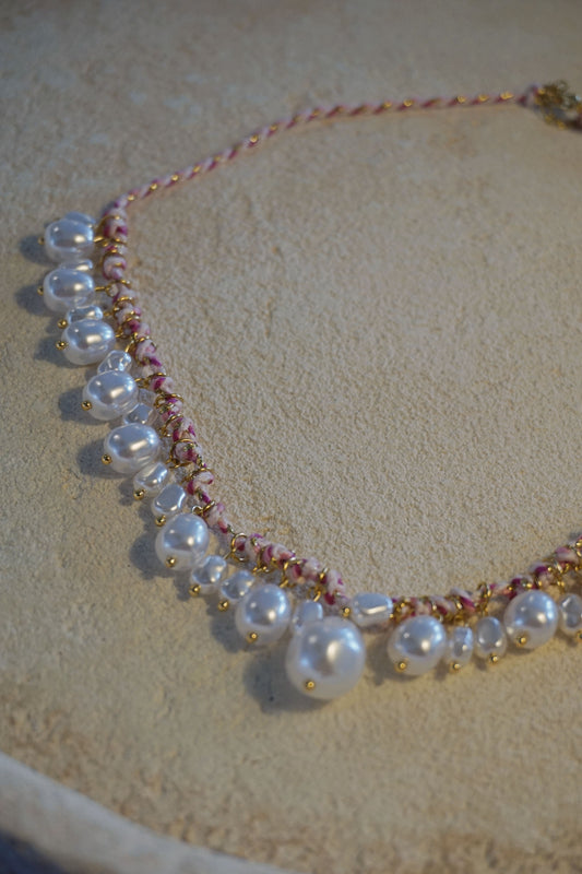 Collier corde tressée et perles rose
