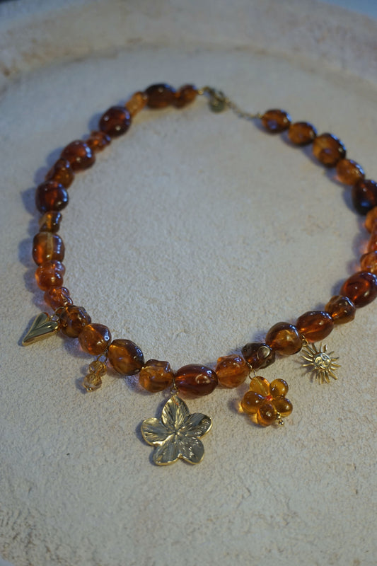 Collier doré pierres résines et charms