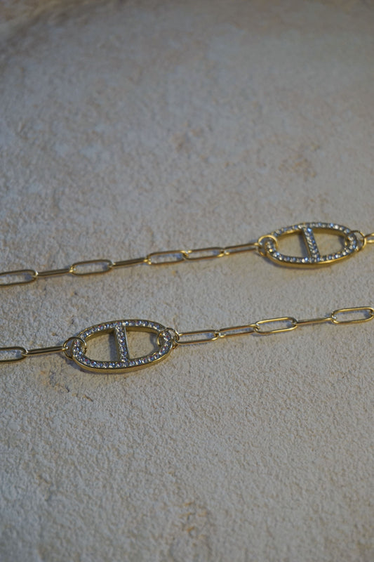Collier doré sautoir grosses boucles et strass