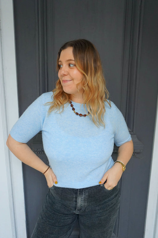 Pull manches courtes tilleul avec alpaga