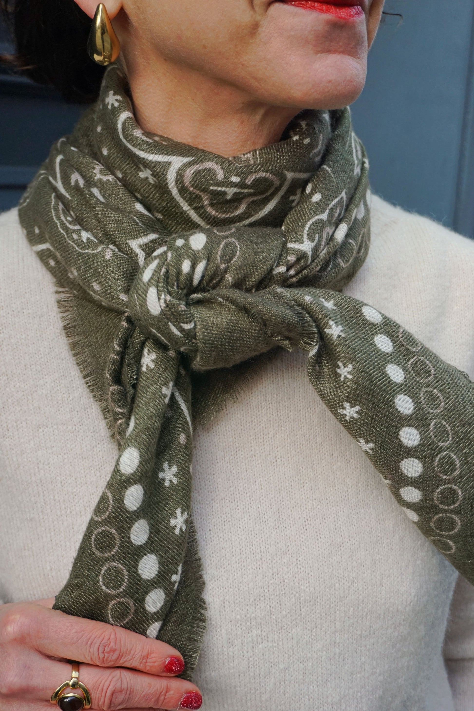 Écharpe douce kaki à motifs