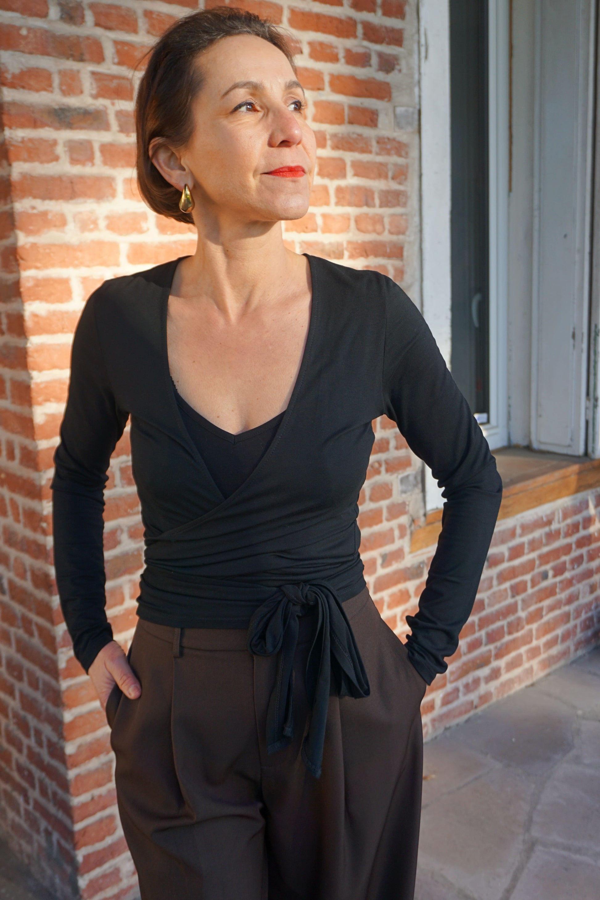Virginie mesure 1m58 et porte la taille S