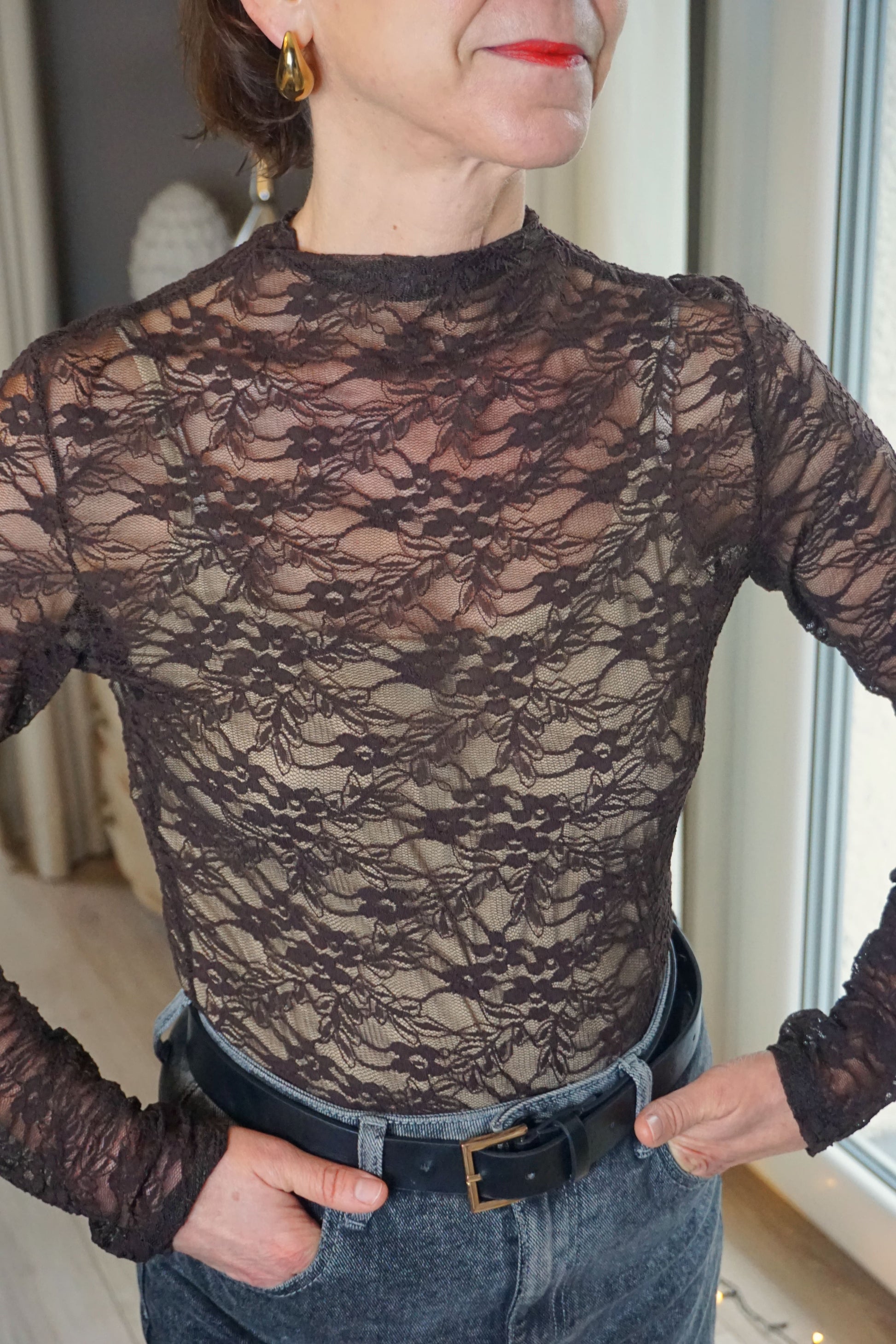 Body en dentelle marron