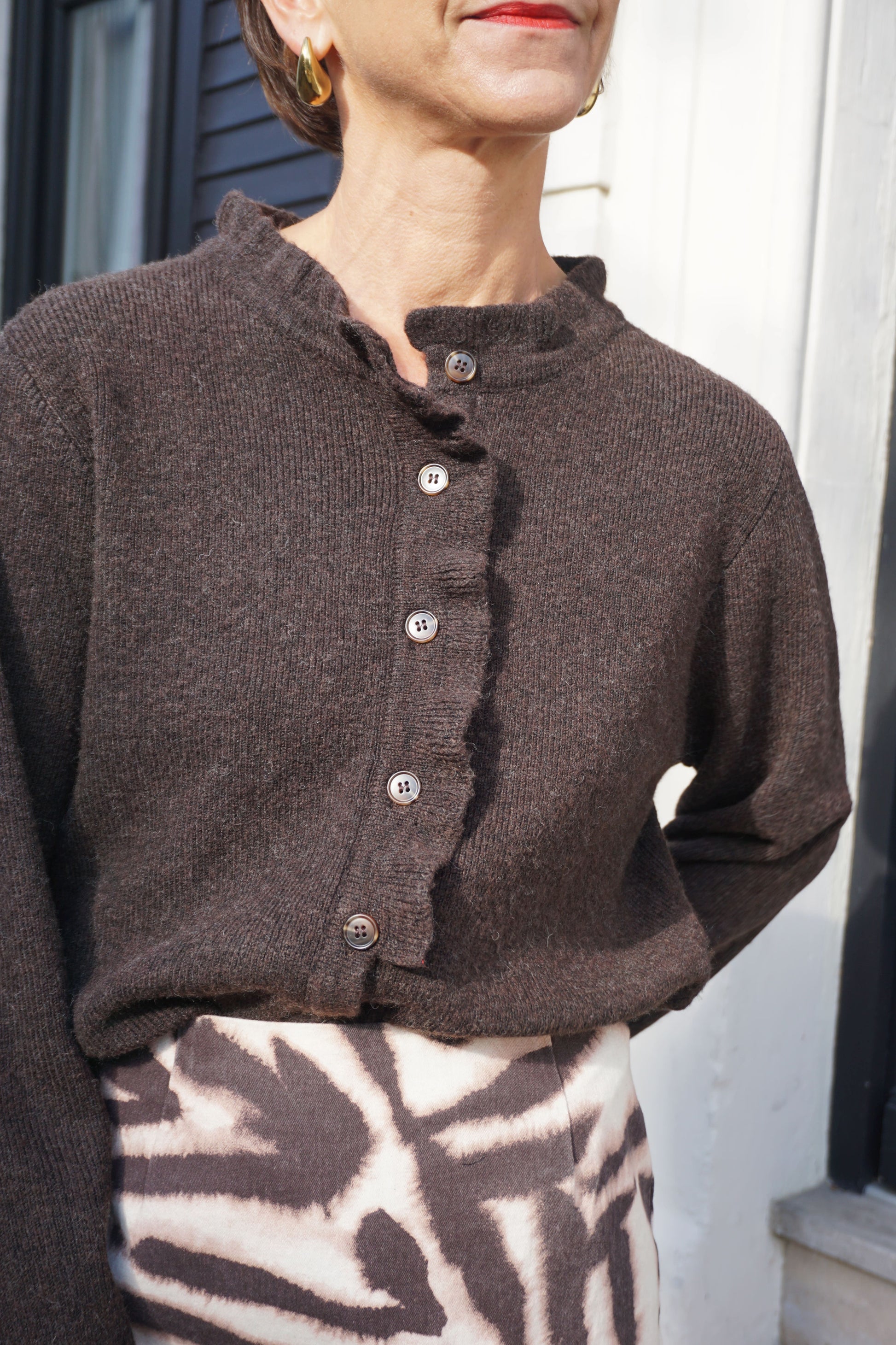Gilet marron foncé volanté maille