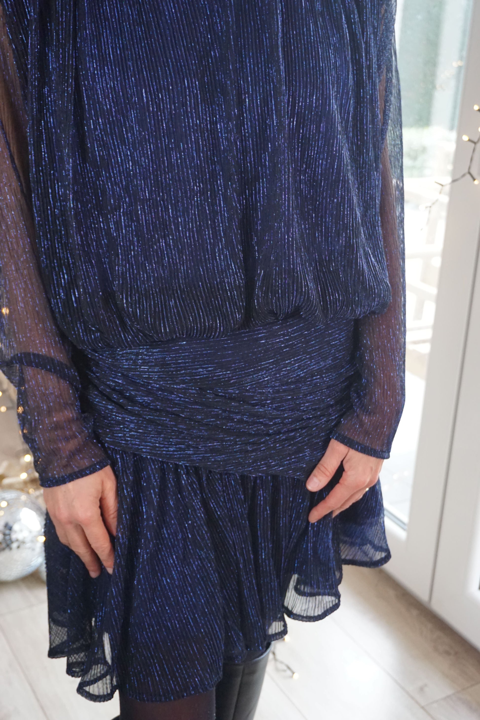 Drapée sur le bas, resserrée sur les côtés et petit volant en bas
