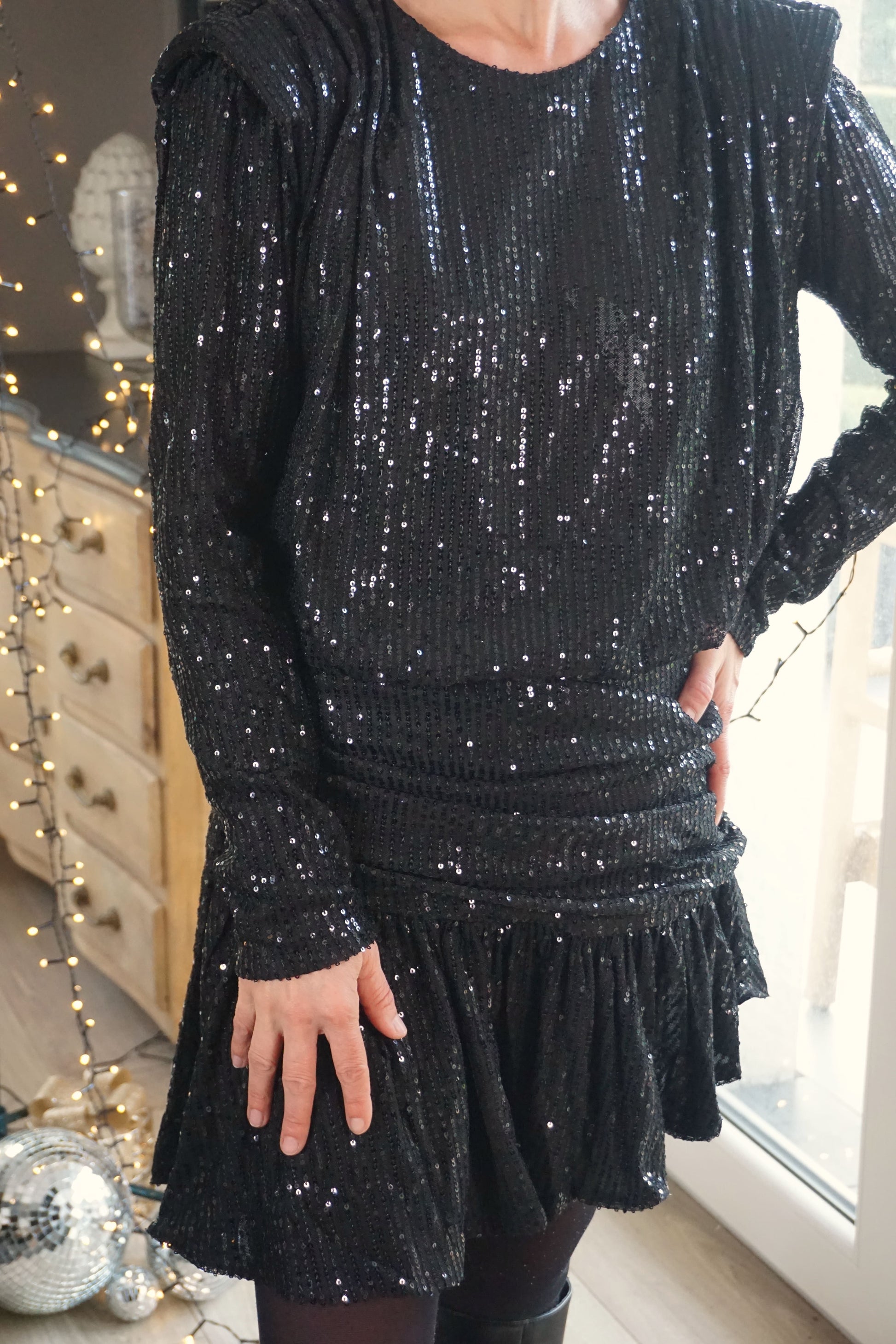 Drapée sur le bas, resserrée sur les côtés et petit volant en bas