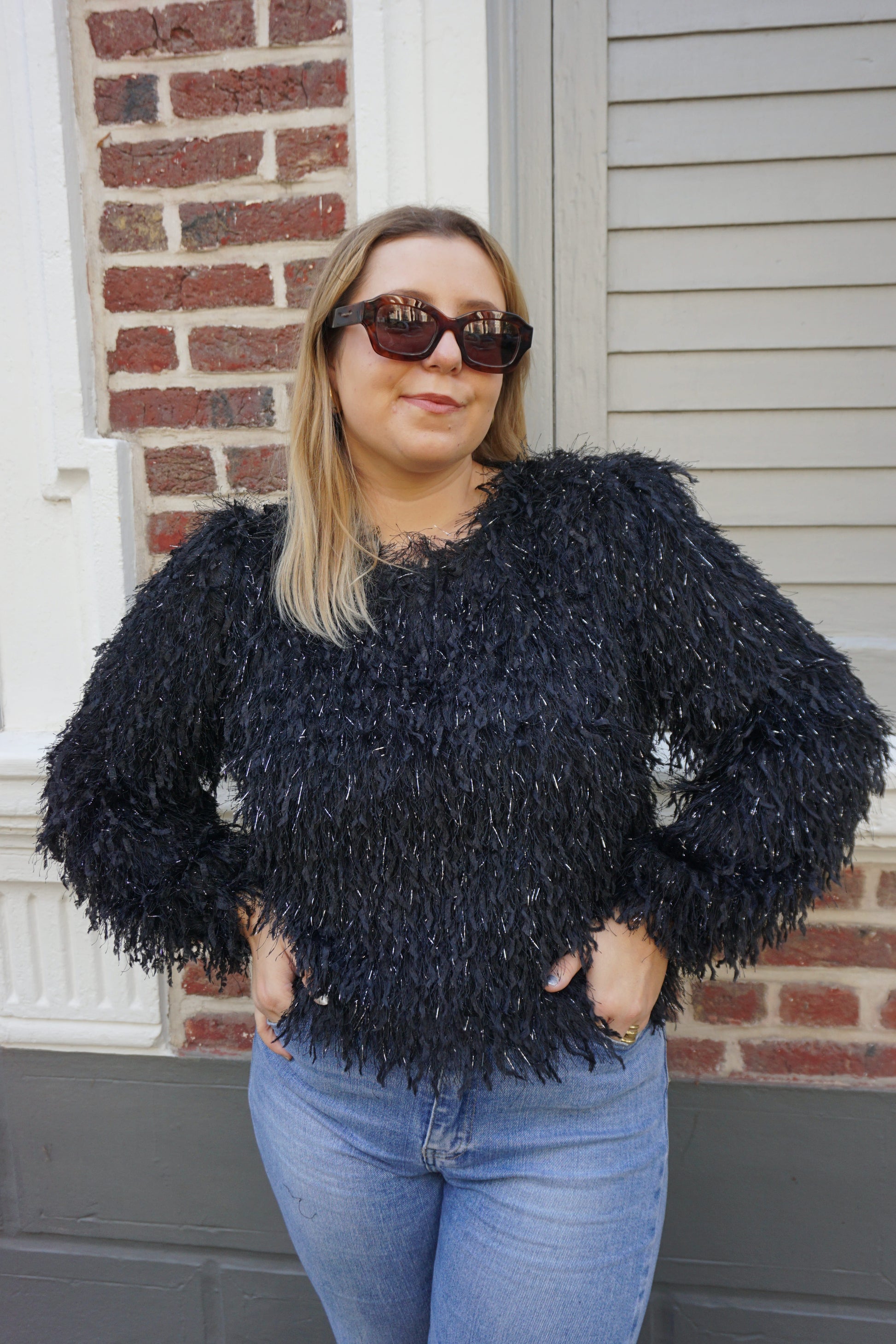 Col rond, manches légèrement bouffantes, resserrées au poignet par un élastique
