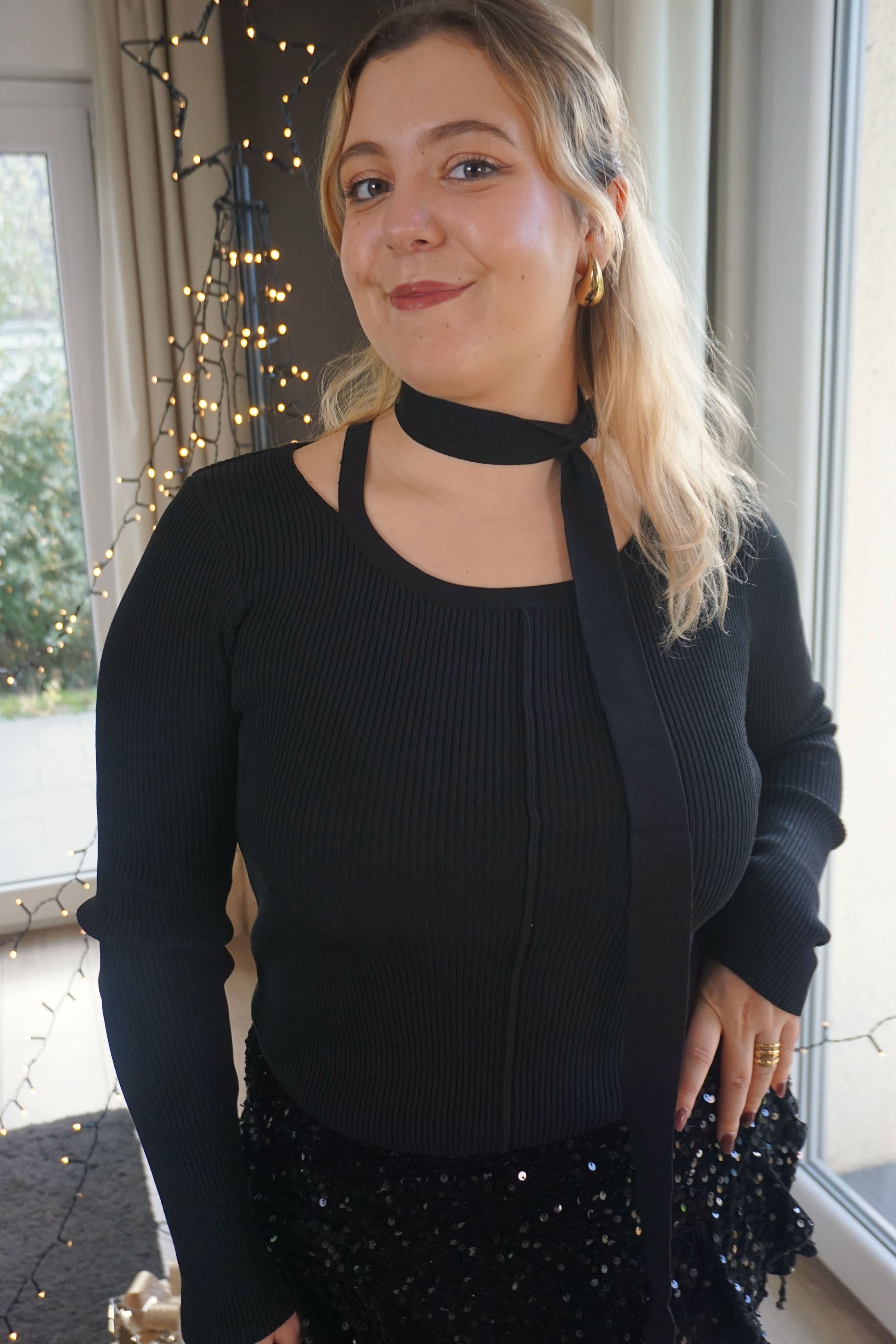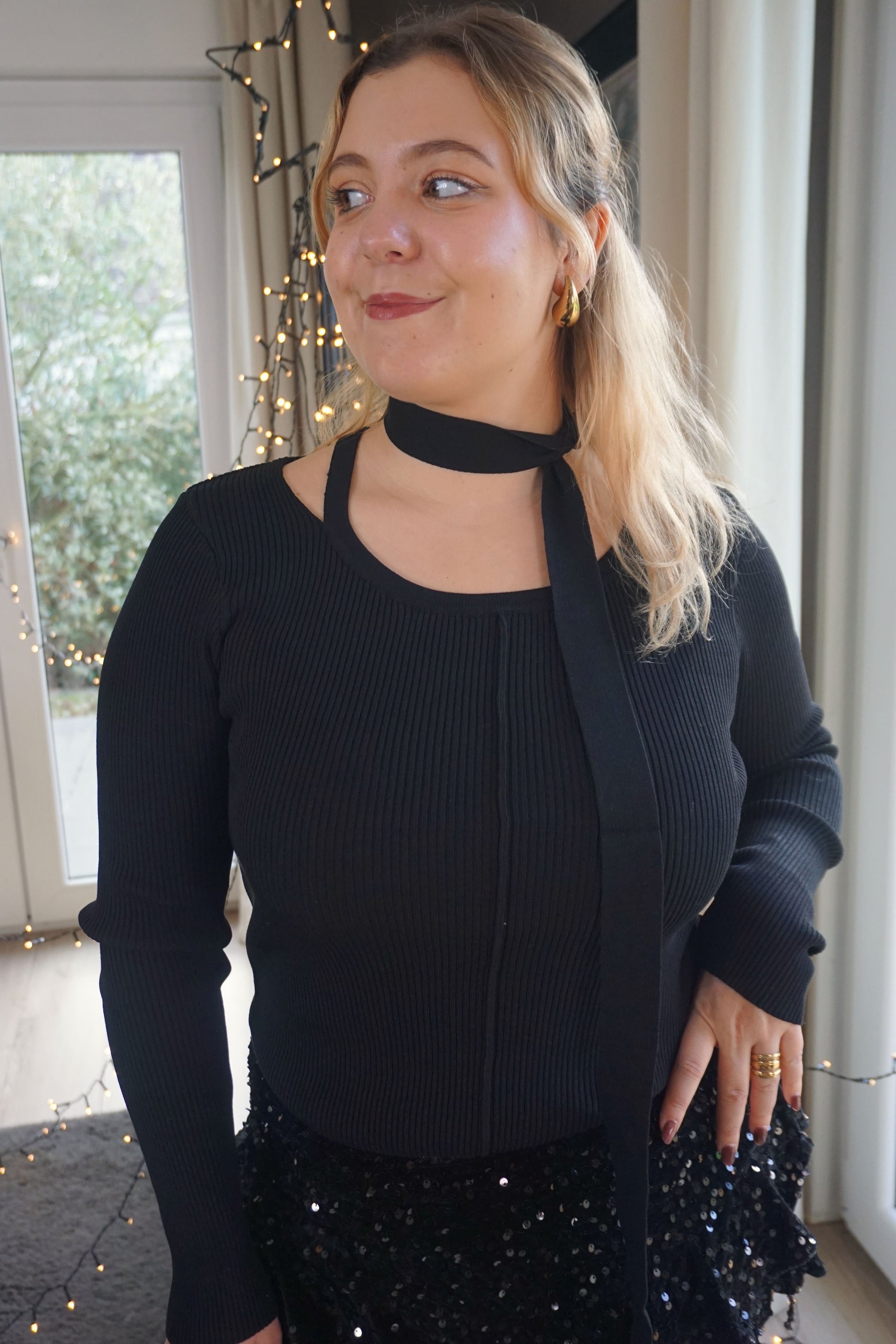 -Coupe moulante, col rond, ouverture sur l’épaule droite