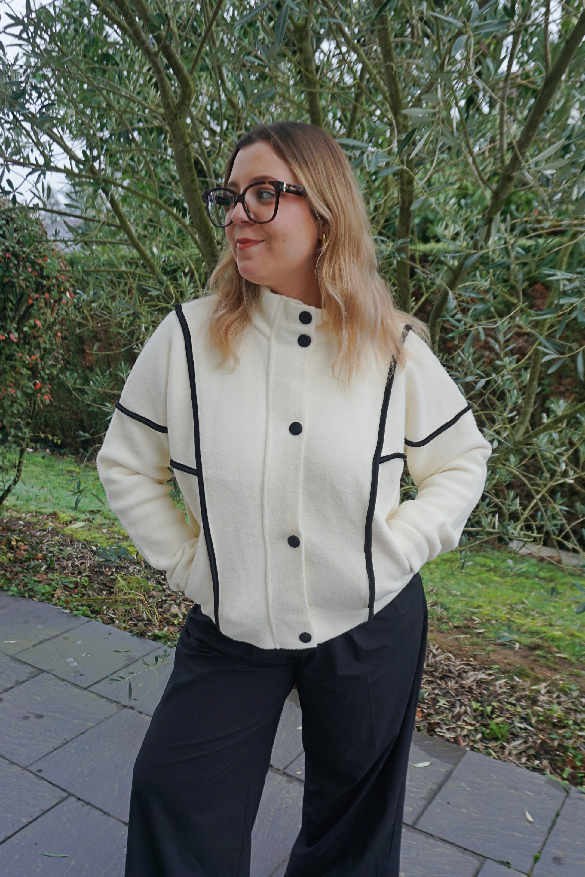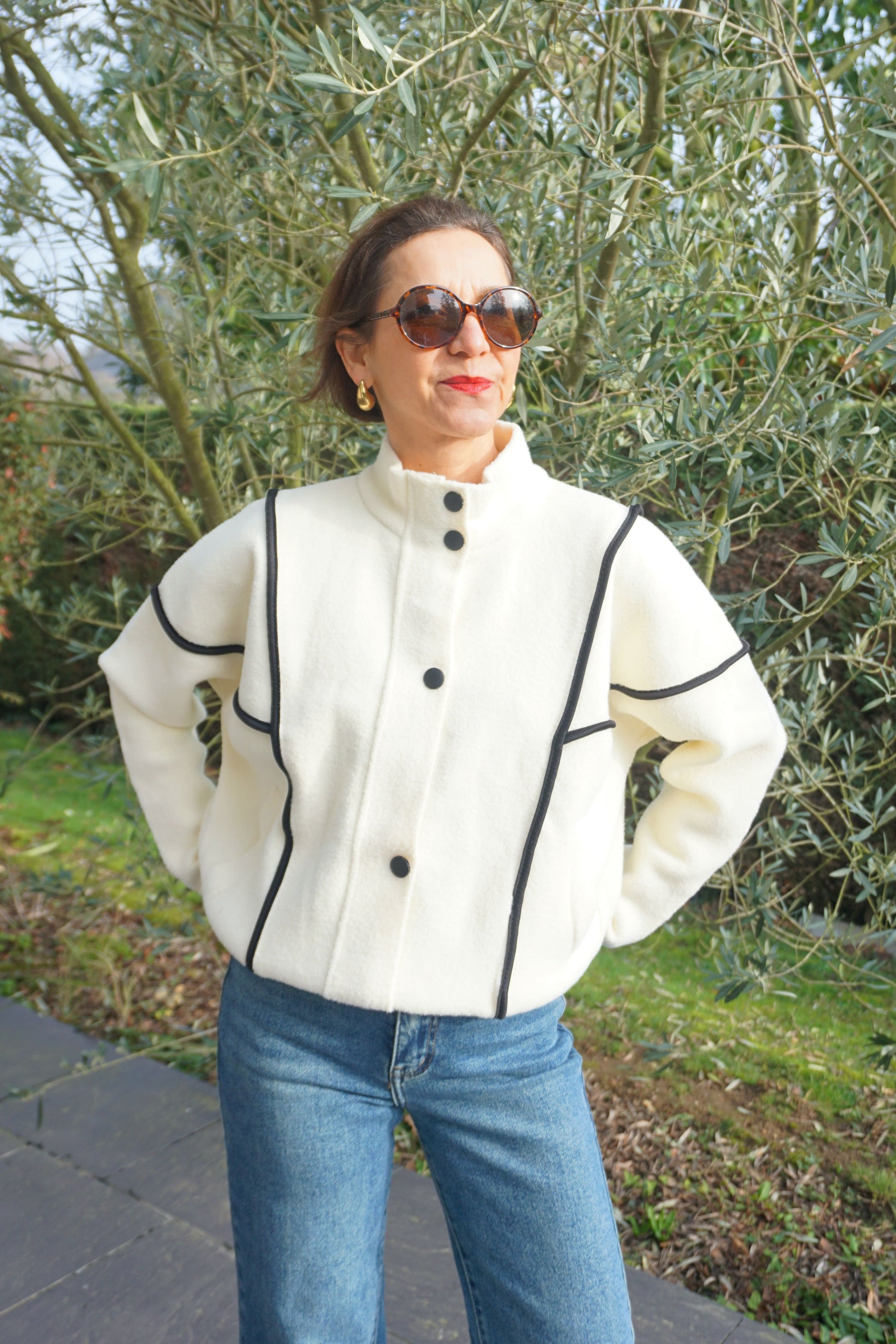 Veste col montant crème coutures noires